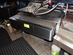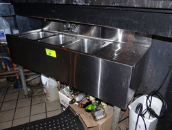 (1) S/S Underbar Ice Bin W/Double Speed Rail and Soda Line, w/4" Backsplash, 3'x30"x34"H#301 - (1) S/S 3 Compartment Sink W/Right Drainboard, 4" Backsplash, 4'x18"x35" H